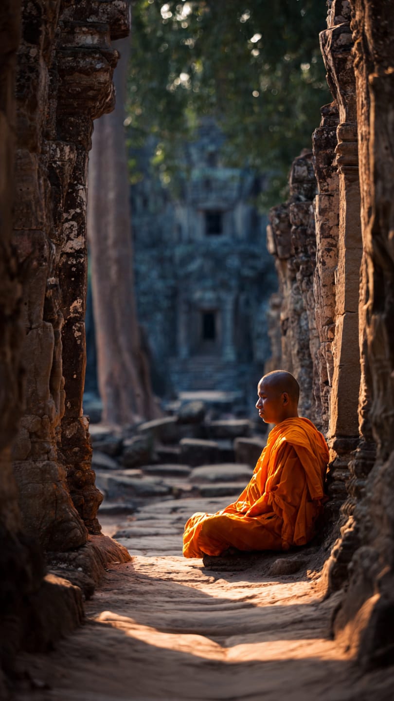 Mönch in Angkor Wat